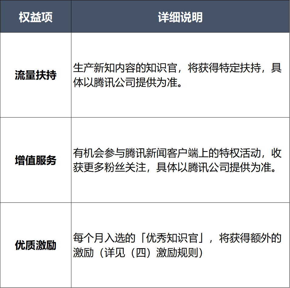 1、激励结果:每月由腾讯公司选出50名优秀知识官,每名优秀知识官将获得2000元资金;